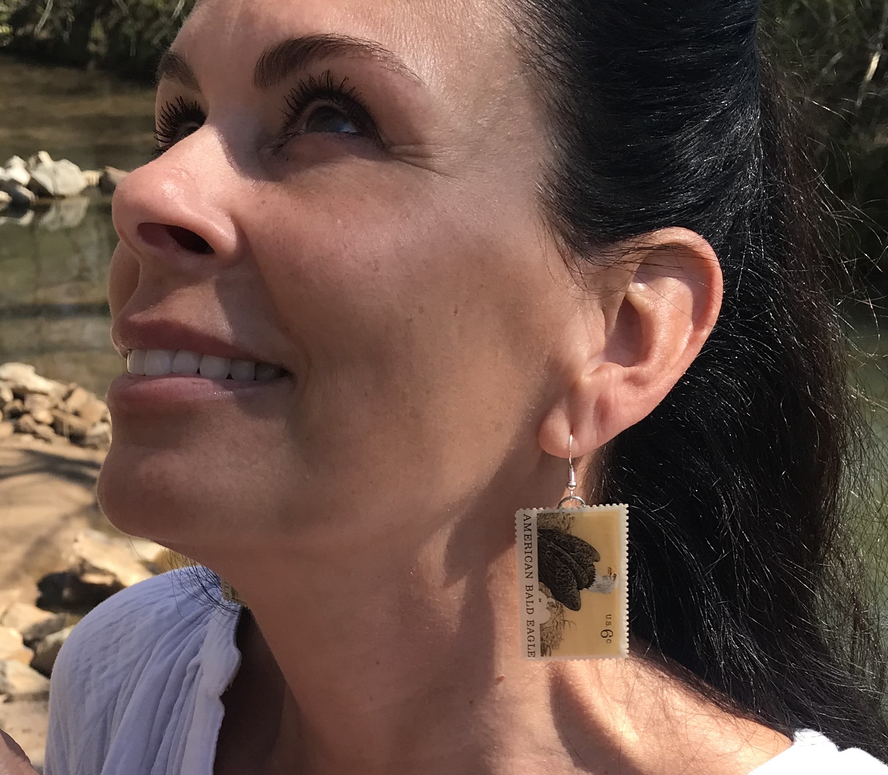 American Bald Eagle, U.S.A., 1970 Vintage Postage Stamp Earrings