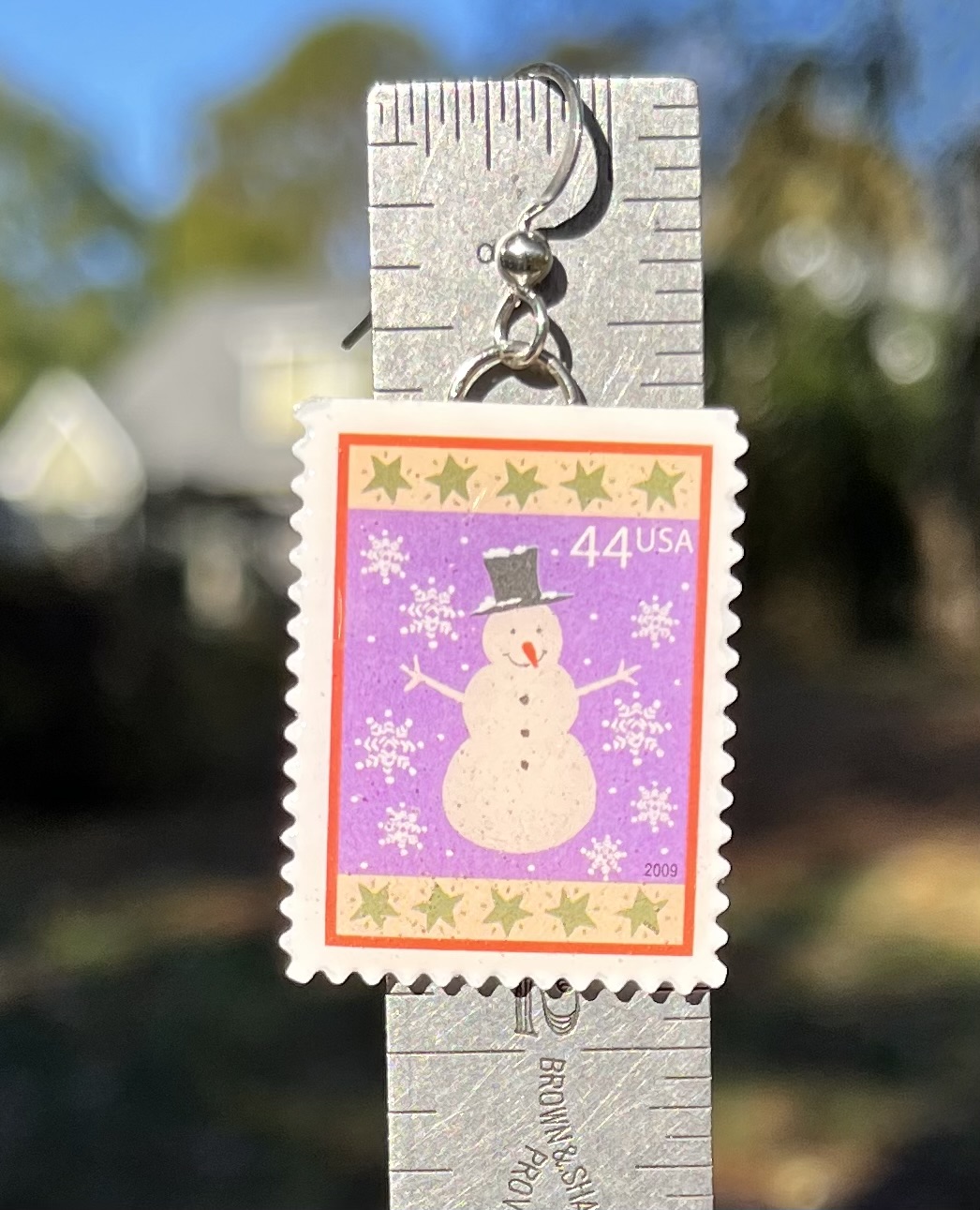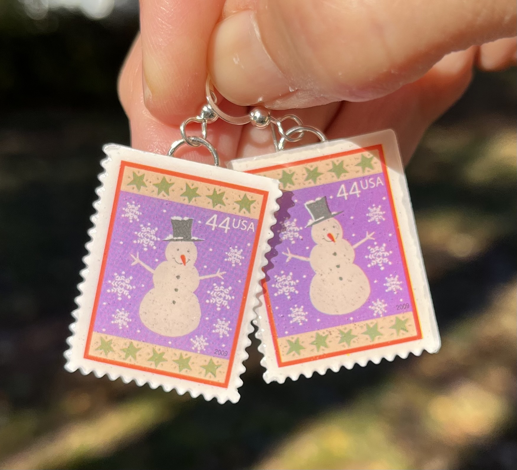 Snowman, U.S.A., 2009 Postage Stamp Earrings